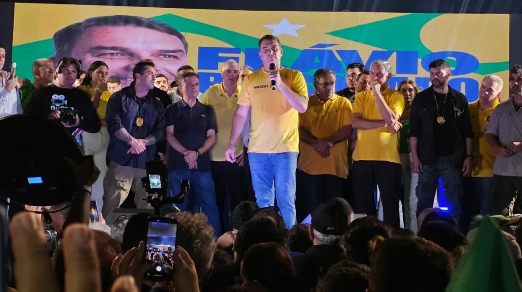 No pronunciamento, Rogério Marinho lembrou que abdicou de um sonho, que era se candidatar ao Governo do Estado, para coordenar a campanha de Flávio, a pedido do pai dele, Jair Bolsonaro.
